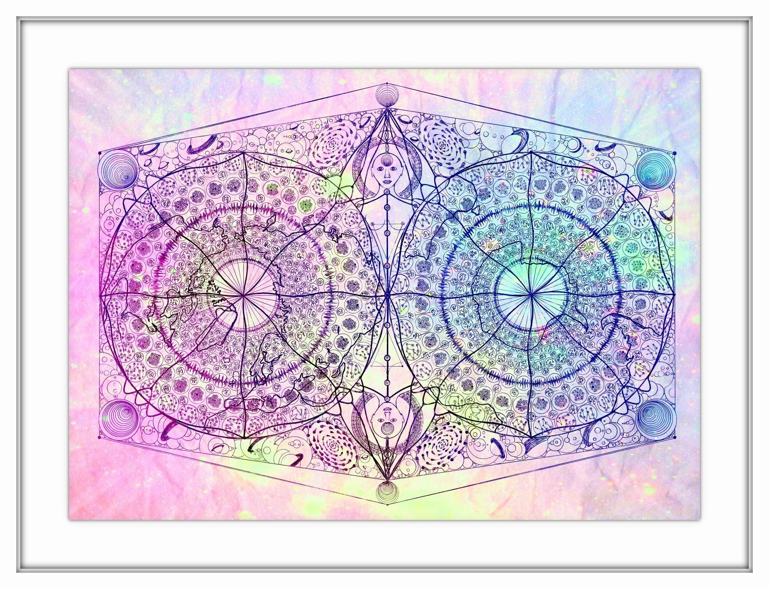 Matrix: Matrix is a captivating representation of the holographic universe, highlighting the duality and interconnectedness of all existence. This artwork embodies the idea that reality, composed of intricate layers of information, is an elaborate illusion. The drawing harmonizes masculine and feminine energies through a central axis of frequencies and symbols and is richly layered with information in myriad forms and patterns. With interactive elements reflecting the fluidity of perception, it invites viewers to question their reality and explore the unseen connections within the vast, mysterious matrix of the universe.